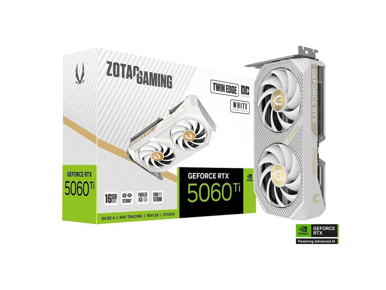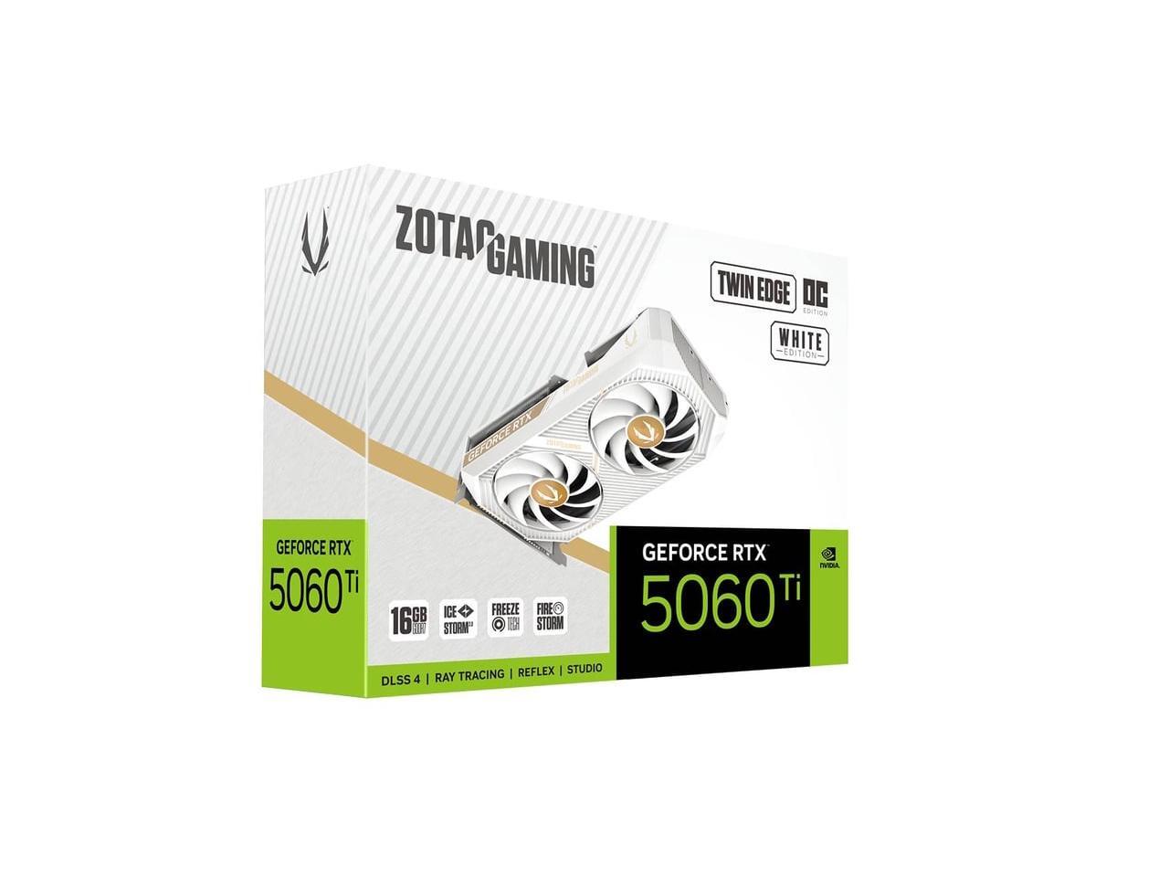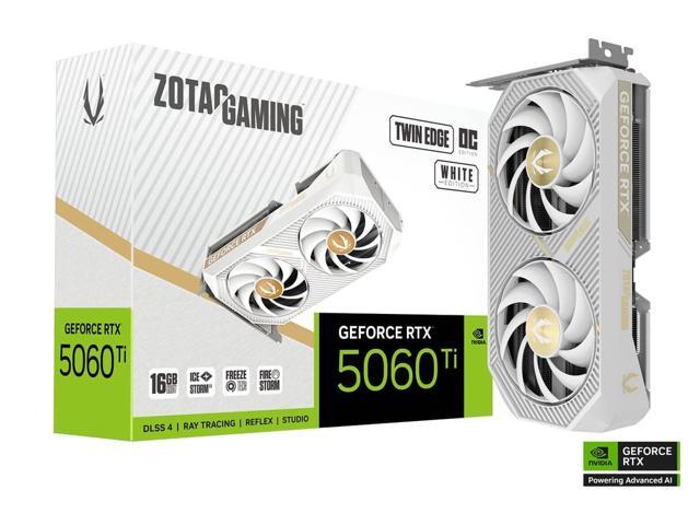 ZOTAC Twin Edge OC White Edition GeForce RTX 5060 Ti 16GB GDDR7 PCI Express 5.0 x8 ATX Graphics Card ZOTAC GAMING GeForce RTX 5060 Ti 16GB Twin Edge OC White Edition ZT-B50620Q-10M