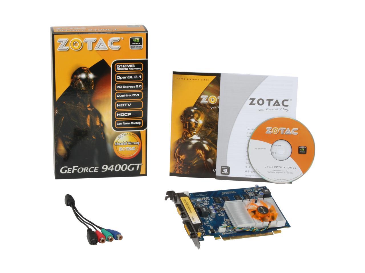 ZOTAC GeForce 9400 GT DirectX 10 ZT-94TEH2P-FSR 512MB 128-Bit GDDR2 PCI Express 2.0 x16 HDCP Ready Video Card