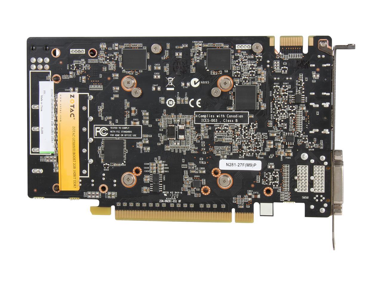 This ZOTAC ZT-61201-10M card features factory overclocked 1059MHz Core Boost Frequency - slightly higher than the reference design - for smoother gameplay. Dual cooling fans guarantee reliable cooling in various load conditions. Comprehensive output connectors allow flexible, multiple displays setup.