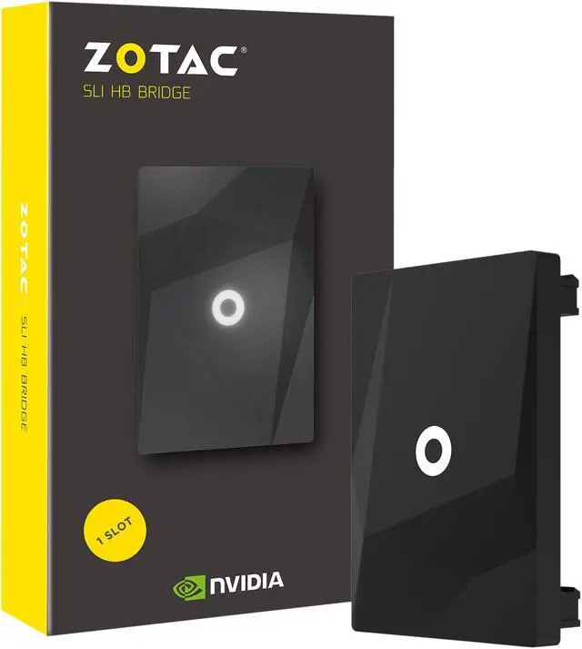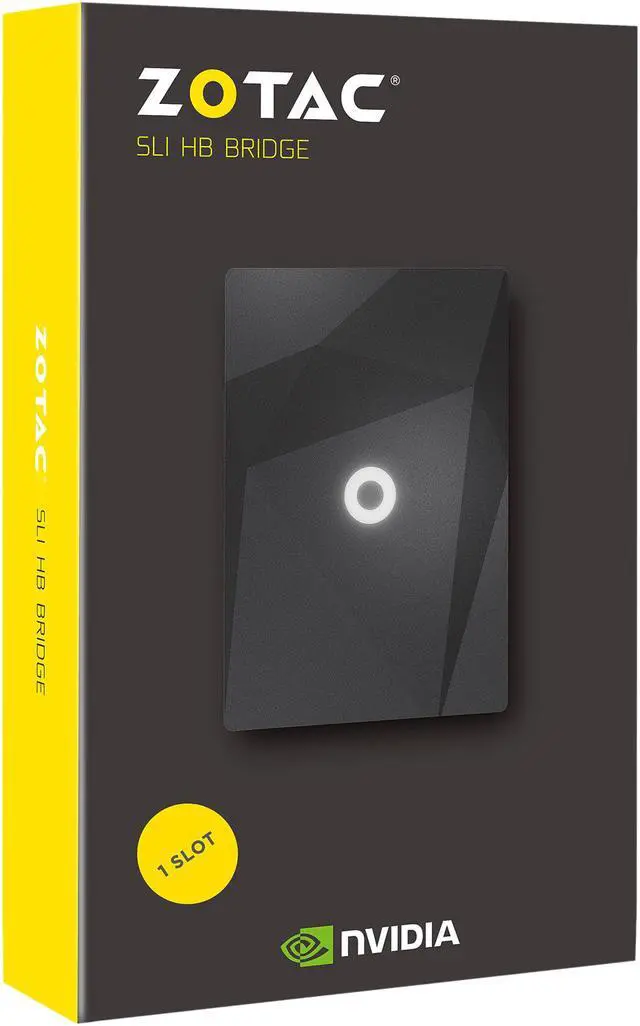 | Features | Maximize your gaming performance with the ZOTAC SLI HB Bridge. Faster SLI performance is achieved by utilizing all available SLI keys to double the available transfer bandwidth. FEATURES - 2-way SLI HB support - Compatible with GeForce GTX 10 series SLI HB supported graphics cards - LED lit logo |