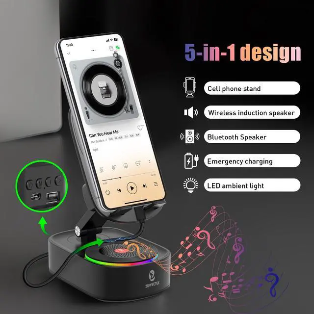One great ZOWEETEK 5in1 wireless induction bluetooth speaker with cell phone stand(S580).