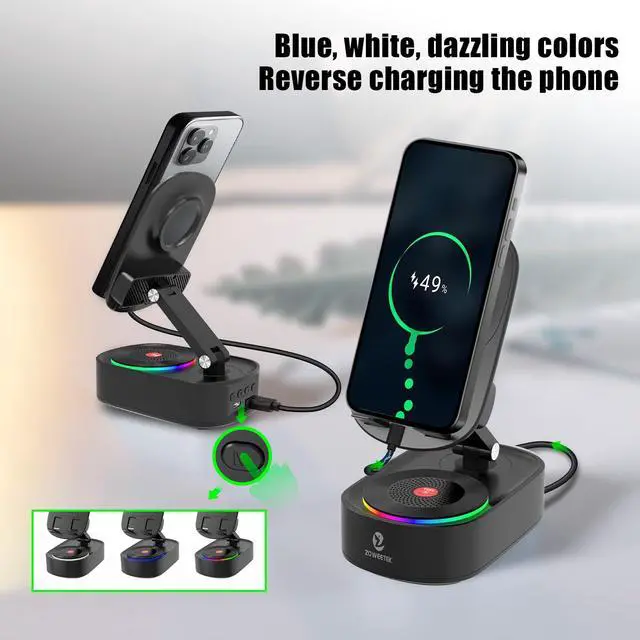 5in1 Wireless Induction Audio Bluetooth Speaker with Phone Stand,Work Time 8H+,Colorful Ambient Light,Emergency Rechargeable,270° Foldable Suitable for iPhone Android Phone Tablet,a Nice Gift