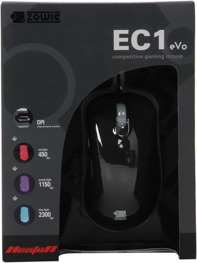 The ZOWIE EC1 eVo mouse is ergonomic designed right-hand gaming mouse developed by HeatoN. Featuring 1.5 mm lift-off distance, this mouse makes it to one of the lowest lift-off distance on the market. Improved mouse wheel system, plug and play with 1.000Hz USB report rate and 450/1150/2300 DPI adjustment allows you to dominate the fiercest combat, not to mention daily work. Pick up the ZOWIE GEAR EC1 eVo mouse today with confidence in knowing that it is constructed with stability, durability and comfort.