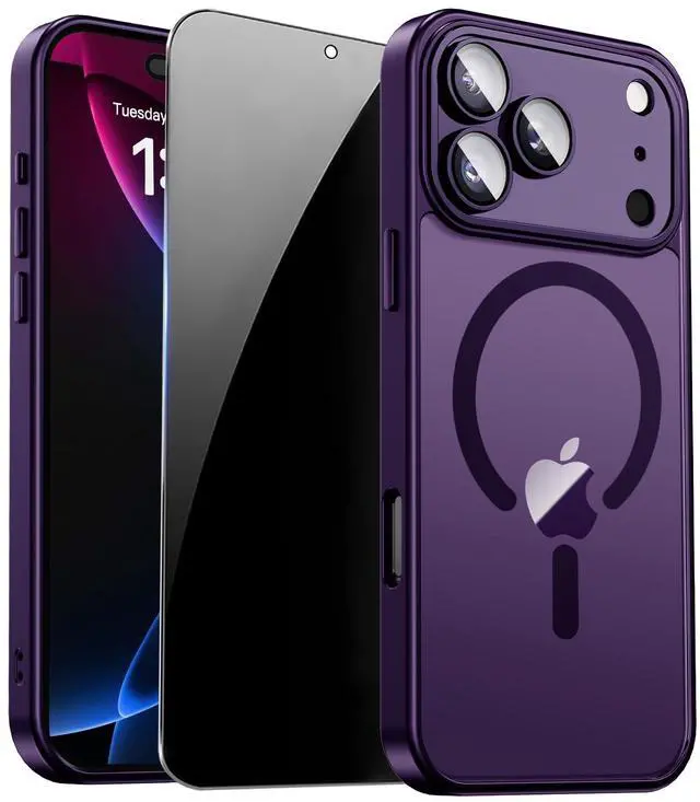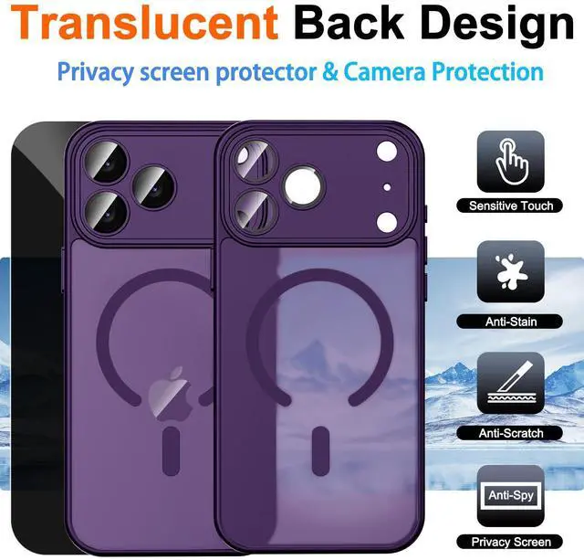 Deep Purple Phone Case for iPhone 17 Pro Max with Magnetic, for iPhone 17 Pro Max Case and Privacy Screen Protector Built-in Lens Protection, 15-FT Drop Protection, Translucent Matte Magnetic Case for iPhone 17 Pro Max Case for Women Girls and Men, Anti Spy Screen Protector iPhone 17 ProMax Case, Anti-Peeping Screen Protector 17 Pro Max Case, for iPhone 17 Pro Max Case Purple