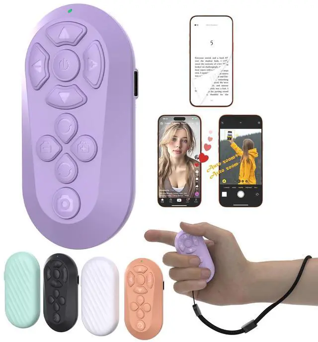 Wireless Remote Controller for iOS/Android Bluetooth Remote Control for TikTok Scrolling/Camera/Video Recording/Kindle App (Light Purple)