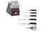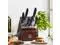 The self-sharpening technology boasts built-in ceramic honing wheels that automatically sharpen when knives are stored or removed. This set is completed with kitchen shears and is housed in a handsome 15-slot self-sharpening knife block.
