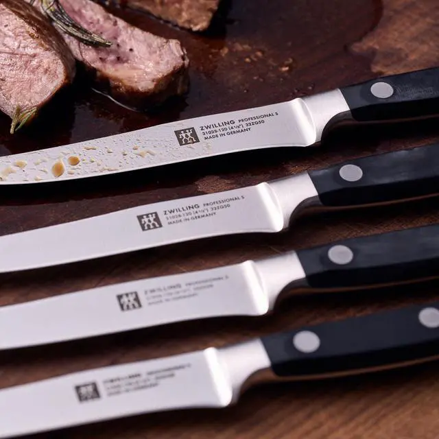 PROFESSIONAL "S" are the classic knives for the professional kitchen. The knives are made of proprietary special formula steel that has been perfected over the years. Combined with ZWILLING's signature ice-hardening technique, these FRIODUR blades are harder, sharper, they will NOT STAIN or chip and they retain their sharpness longer.