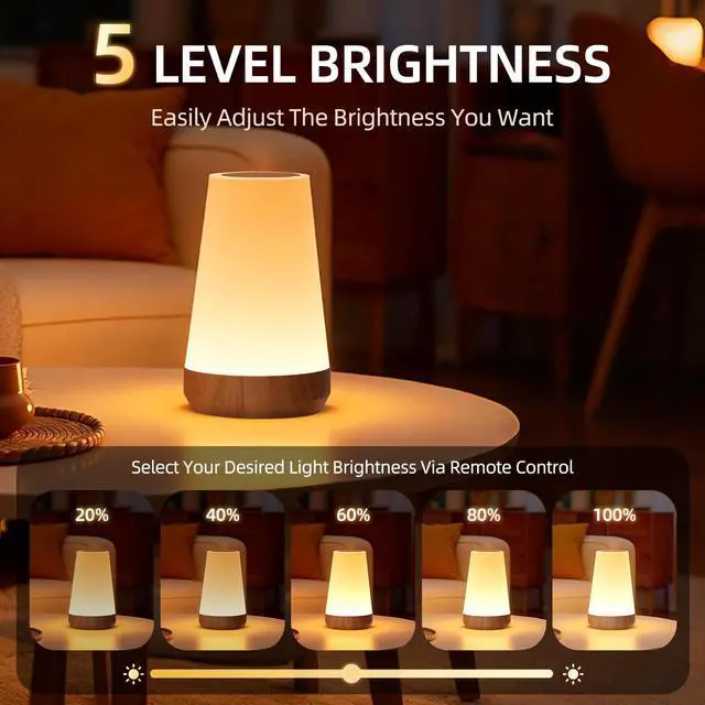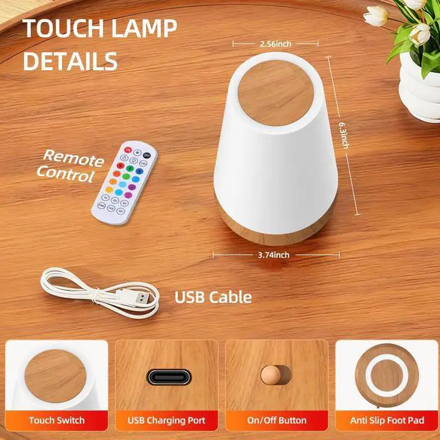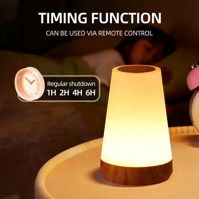 Touch Activation & Remote ControlTouch the top for 3 seconds to easily turn on/off the light, just click on the top or use the remote control to change the color, light mode or brightness level; This bedside lamp has no cables, giving you peace of mind that This way your baby won't accidentally trip over it.