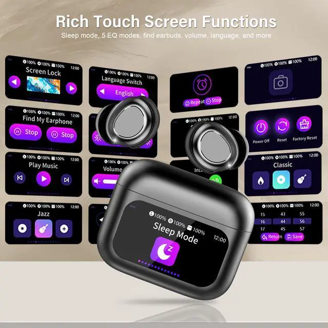 Smart Touchscreen Control, Fully Customizable: Sleep earbuds are equipped with a smart full-color LED touchscreen charging box, which is within reach and intuitive. You can easily play or pause music, adjust the volume, switch tracks, answer calls, etc. by touching the screen or the sleep earphones. The touch screen also provides rich functions, including sleep mode activation, 7 language options, wallpaper and brightness adjustment, etc., designed to enhance your sleep and audio experience.